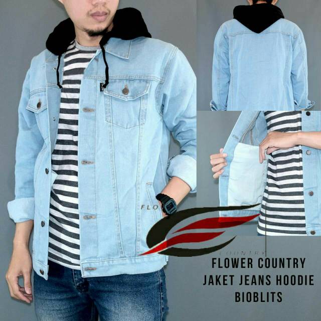 Jaket Jeans Panjang Pria Pakai Kupluk Jaket Jeans Pakai Topi