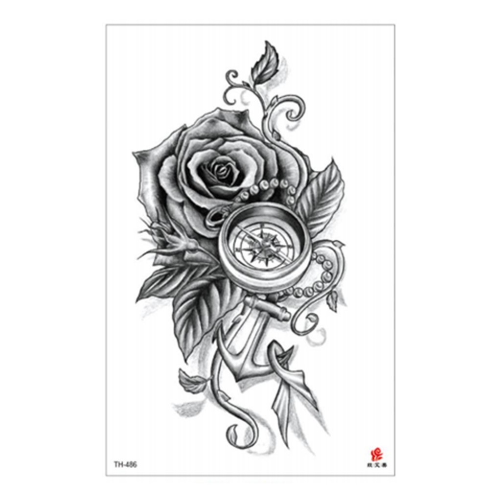 15 45 Cm Jam Rose Bunga Besar Tato Hitam Tahan Air Sementara