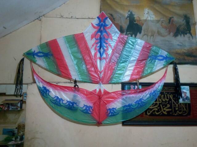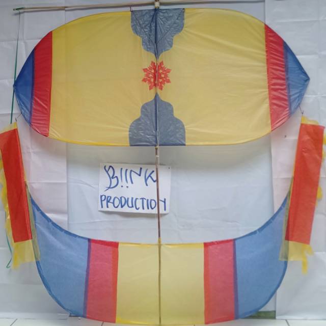 Layangan ini berbahan kain bali dengan ukuran 60 x 90 x 10 cm. Gambar lunas anda secara terpisah.