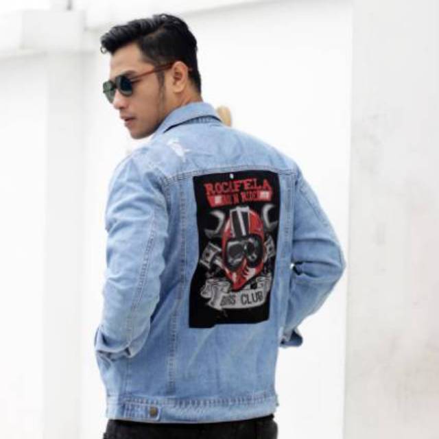 Jaket Jeans Pria Original Rocafela Rock N Ride Jaket Jeans Sobek