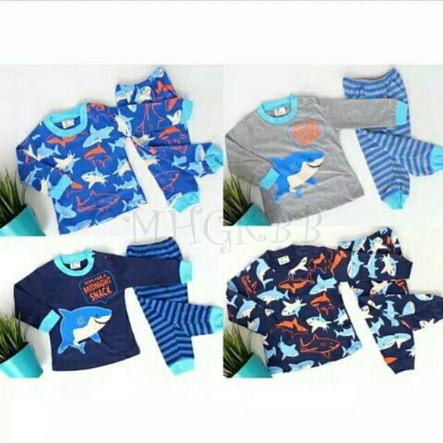 Piyama Bayi Cowok Sleepy Girrafe Motif Shark Terbaru Lucu Keren
