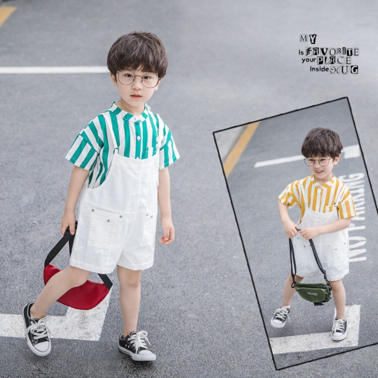 Setelan Baju Anak Laki Laki Kemeja Ganteng Celana Pendek Katun